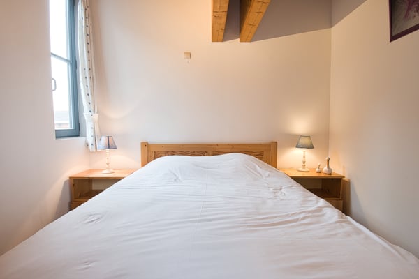 Ce logement, situé au premier étage de l'Ancienne Grange du Château-Ferme, comprend une cuisine équipée avec un lave-vaisselle, une télé avec lecteur DVD, une radio, une salle de bain ainsi qu'une chambre avec un lit double.