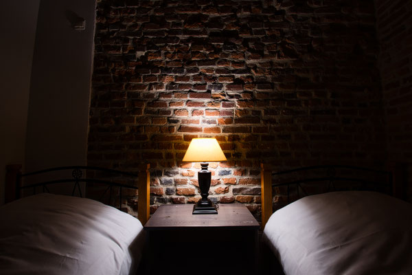 Les chambres se trouvent au premier étage avec un escalier en colimaçon. Vous disposez de deux chambres de 2 lits simples et d'une salle de bain.