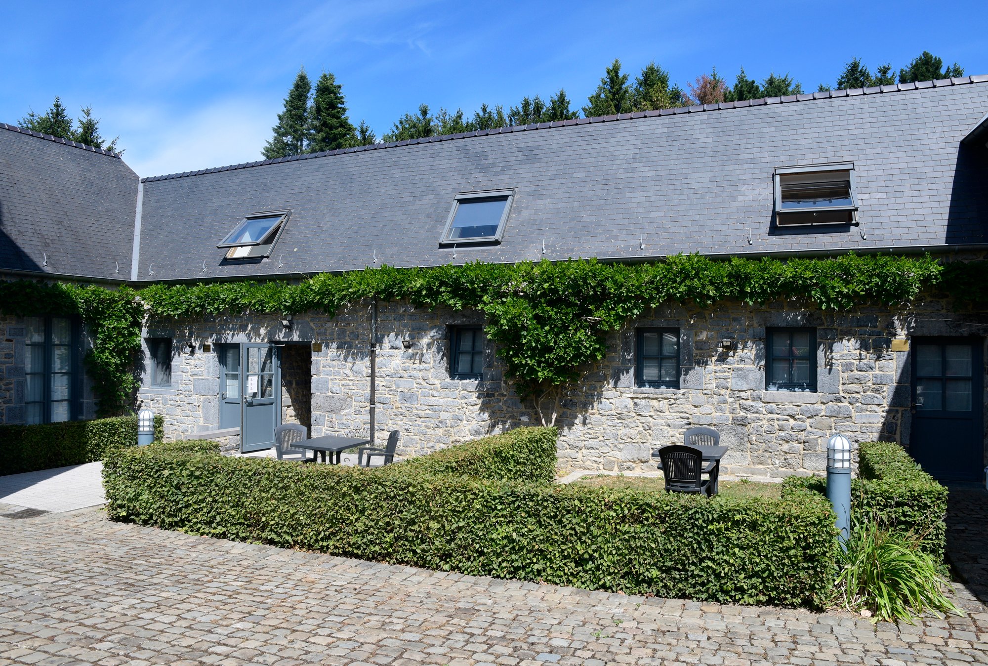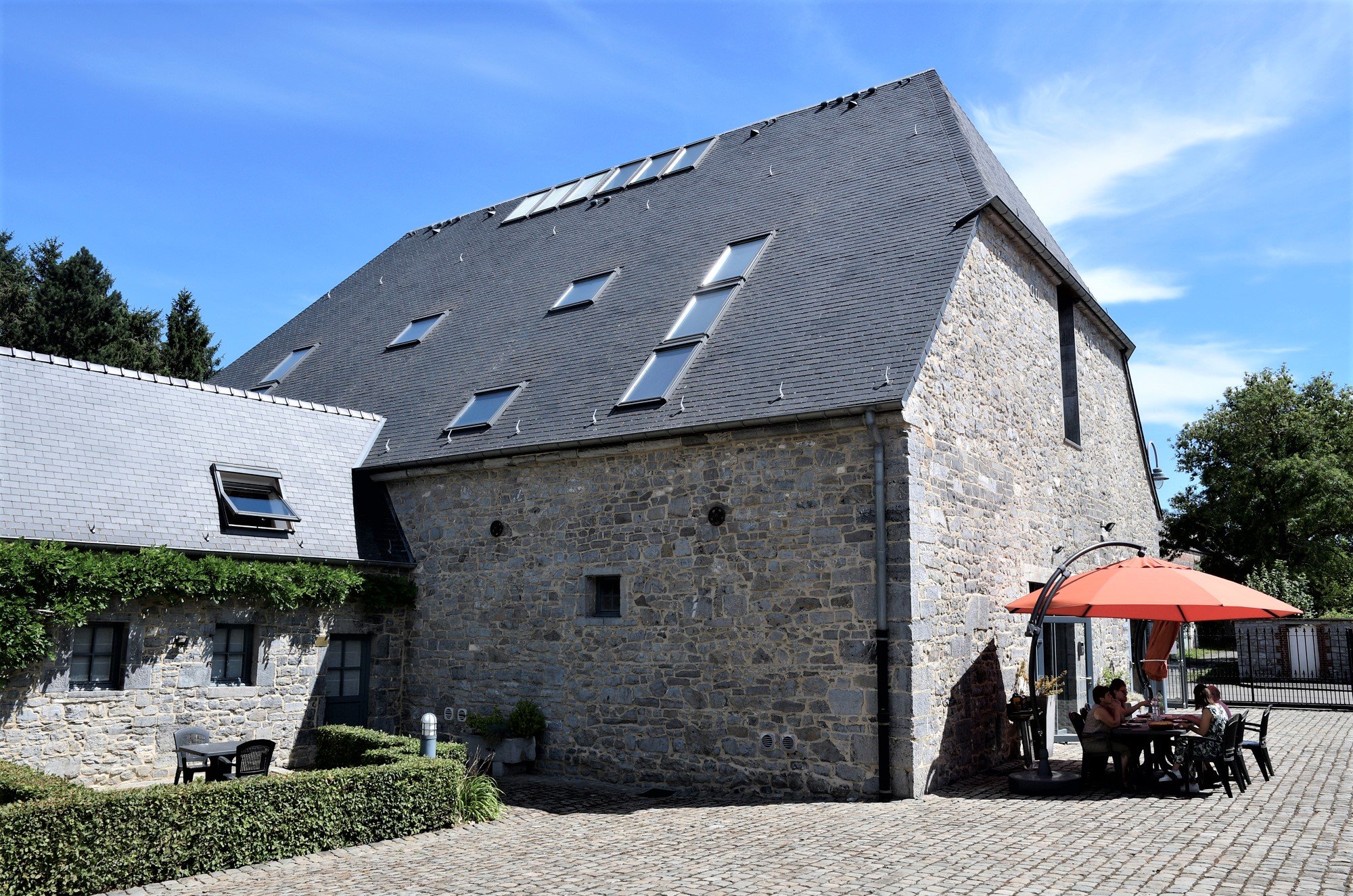 Elk van haar drie gebouwen vormt een deel van de mooie omlijsting van het vierkantige binnenplein van de kasteelhoeve, het warme hart van uw feest of bijeenkomst.